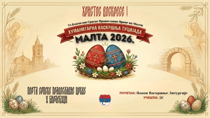 Sutra, u nedelju 12. aprila 2026., na Uskrs, odmah po svetoj liturgiji u Srpskoj pravoslavnoj crkvi u Birezbudži održaće se tradicionalna vaskršnja tucijada koju zajedno priređuju Srbi za Srbe Malta i Srpska Pravoslavna Crkva Malta. Reklama Sabor vere i humanosti „Dok nas sunce Mediterana greje, u duhu poetskog razmišljanja, naše misli lete ka rodnoj grudi–